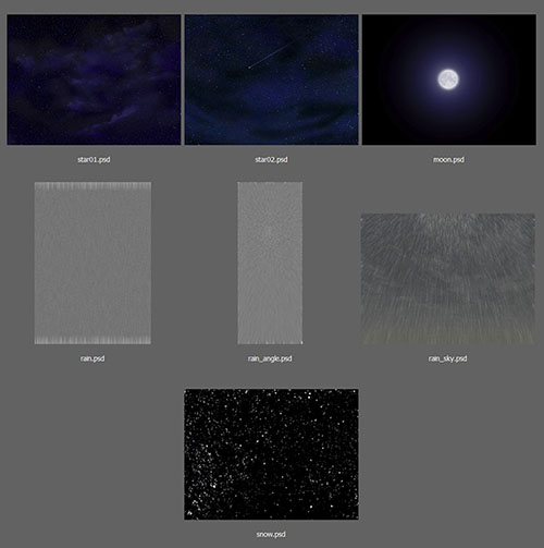 雨、星空、月、雪を簡単に追加できるpsdファイル(テンプレート)です。
