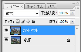 1. 背景レイヤーをコピーして、カットアウトを適用するレイヤーを作ります。とりあえずこのレイヤーを「カットアウトレイヤー」と呼ぶことにしましょう。