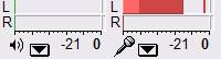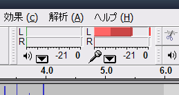 (Audacityでは一度でもピーク値まで触れれば、赤いマークはずっと出っぱなしになります。