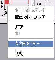 ↑メーター部分を右クリックして、「入力をモニター」を選ぶことで、マイク音量を表示させることができます。